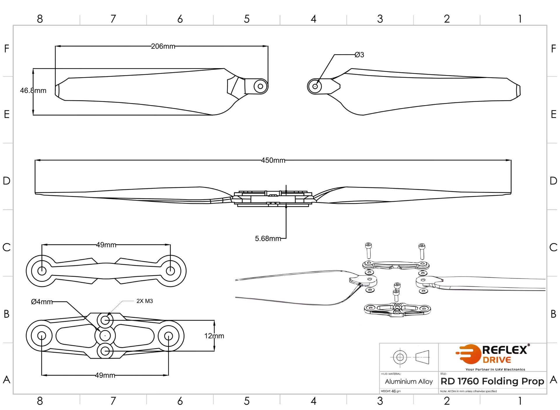 Introducing the 1760 Folding (CW/CCW) Propellers: Unleash performance and efficiency in a compact design. Engineered to deliver exceptional results, Weighing only 46 grams, these lightweight propellers reduce the overall weight of your aircraft without compromising performance. This helps extend flight times and improve efficiency, so you can maximize your time in the air.