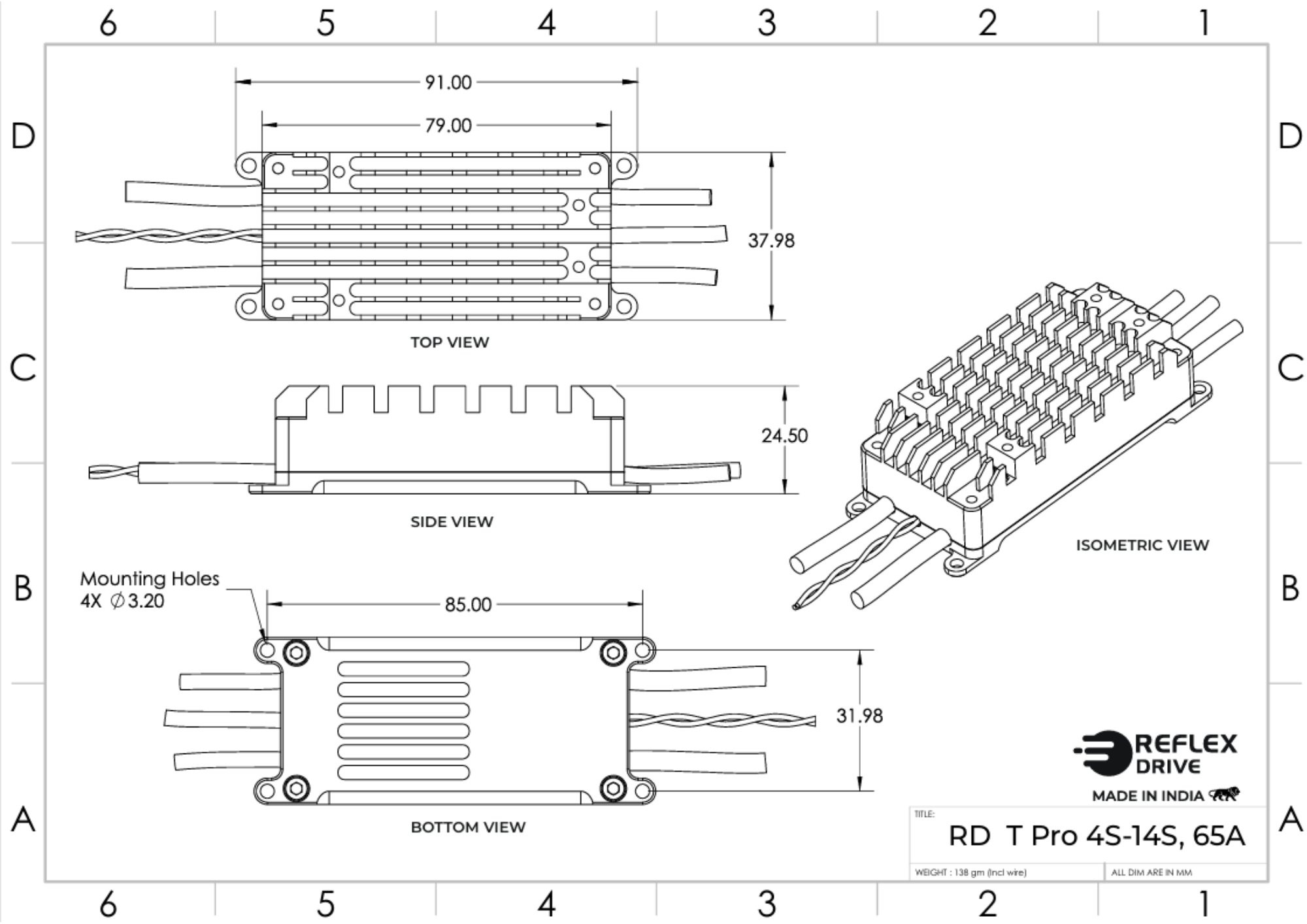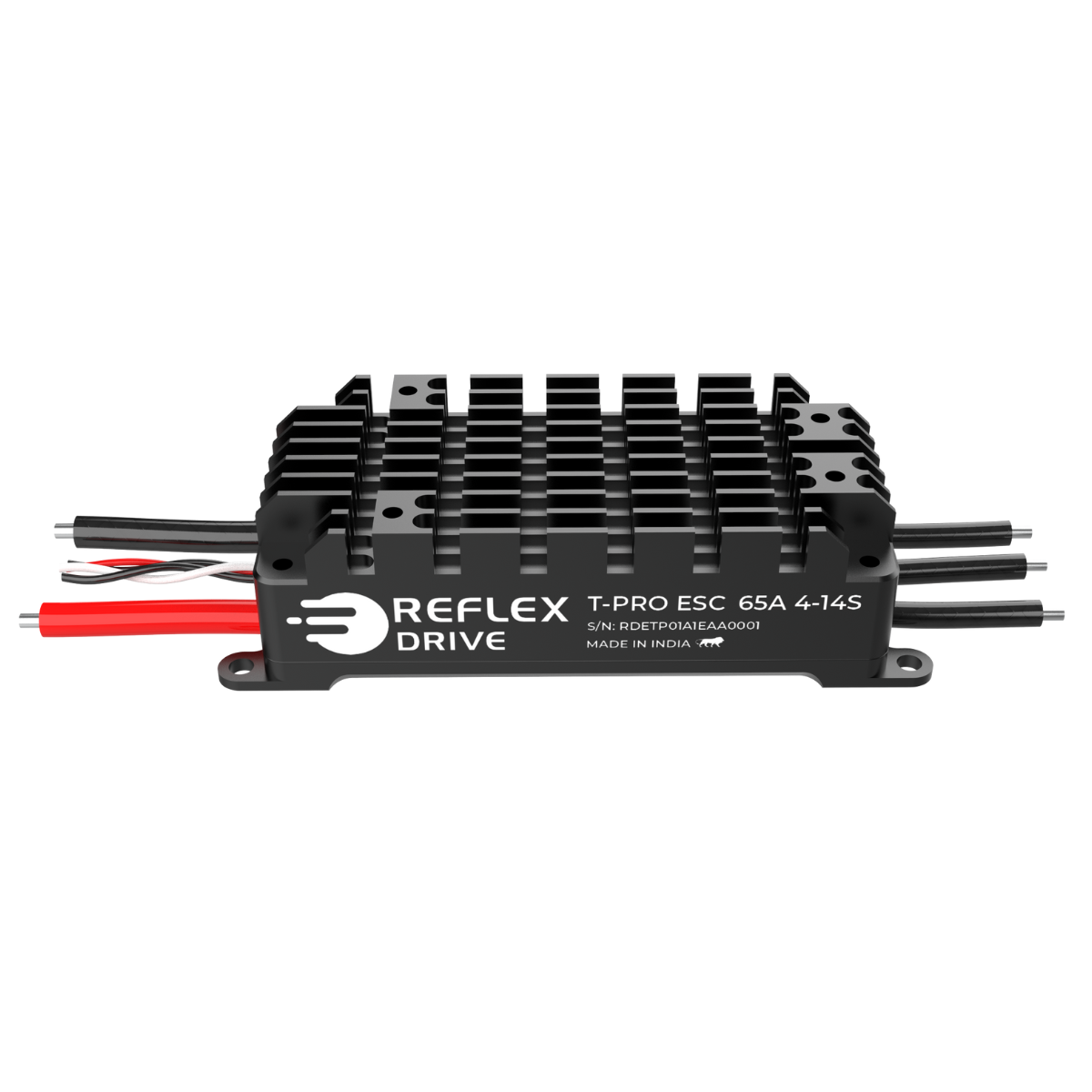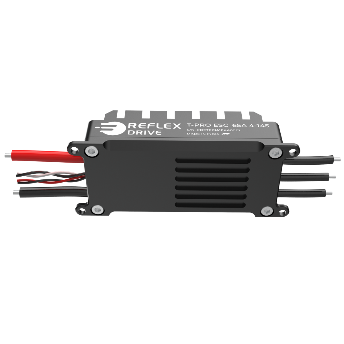 RD T-Pro ESC is an advanced electronic speed controller (ESC) designed for high-performance applications – and is proudly made in India. This upgraded model in the T-Series incorporates heavy copper on the PCB, significantly enhancing thermal and current handling capabilities. With its sleek and durable aluminium enclosure, the trapezoidal ESC provides excellent heat dissipation and protection against harsh environmental conditions.